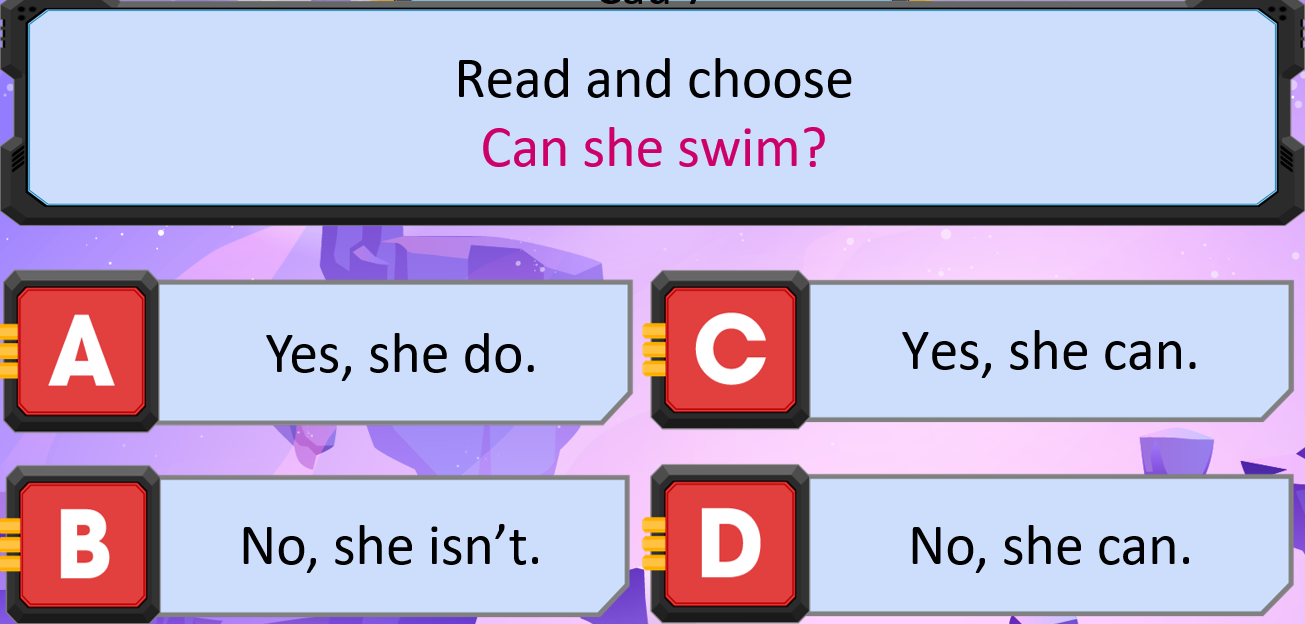 Giải thích: Can she swim?: Cô ấy có thể bơi?